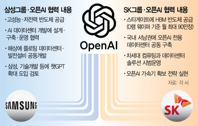 이에 올트먼 CEO도 “한국은 전 세계 어느 국가도 갖지 못한 산업 기반을 가진 최고의 파트너”라며 “(기업의) 수요와 국가적으로 필요한 수요를 같이 지원해 나가겠다”고 말했다. 이 대통령은 앞서 미국 뉴욕에서 래리 핑크 블랙록 CEO와 만나 한국을 아시아태평양 지역의 ‘AI 허브’로 만들겠다는 구상을 밝힌 바 있다. 이를 위해 150조 원 규모의 국민성장펀드를 조성해 AI를 중심으로 데이터센터와 첨단 미래 산업을 육성한다는 청사진을 내놓았다. 이런 가운데 오픈AI와 한국 기업과의 협업은 마중물 역할을 할 것이라는 게 정부의 기대다. 실제 올트먼 CEO는 “오픈AI가 스타게이트 프로젝트를 확대하는 과정에서 전반적인 웨이퍼가 월 최대 90만 장에 달할 것”이라며 “수요의 상당 부분을 삼성과 SK에서 공급받기를 희망한다”고 설명했다.