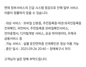 사회 사회일반 2025.09.27 12:51:05국가정보자원관리원(국정자원) 전산실 화재 여파로 은행권과 핀테크 업계의 모바일 신분 확인 서비스가 줄줄이 멈췄다. 금융위원회는 긴급 비상대응반을 꾸려 피해 현황을 점검하고 있지만 사태가 평일까지 이어질 경우 금융권 혼란이 확산될 수 있다는 우려가 커지고 있다. 26일 오후 8시 15분 대전 국정자원 본원에서 발생한 화재로 정부 전산시스템이 전면 마비되면서 27일 오전 은행 앱 곳곳에는 “행정안전부 시스템 점검으로 일부 서비스가 원활하지 않다”는 공지가 일제히 게재됐다. 정상화 시점 역시 “행안부 점검 완료 시”로만 안내돼 소비자 불편이 이어졌다. 특히 피해는 본인확인 서비스에 집중 발생했다. 금융권에 따르면 모바일 신분증, 주민등록증 진위확인, 전자문서지갑 등 핵심 인증 수단이 일시 중단됐다. 이에 따라 비대면 계좌 개설, 인증서 발급 등 모바일 금융 서비스 상당수가 제동이 걸렸다. 한 시중은행 관계자는 “운전면허증이나 여권 등 다른 신분증으로는 인증이 가능하지만 모바일 기반 인증에 의존하던 고객들은 큰 불편을 겪고 있다”고 전했다. 금융위는 이날 새벽부터 정부 매뉴얼에 따라 ‘금융 비상대응반’을 가동하고 업권별 영향을 긴급 점검했다. 금융위 관계자는 “소비자 피해가 최소화되도록 업권별 상황을 예의주시하고 있다”며 “구체적인 대응 방향은 오후 중 발표할 예정”이라고 설명했다. 금융감독원도 전산담당 부서를 중심으로 긴급 점검에 나섰다. 금감원은 자체 서버를 운영해 직접 피해는 크지 않지만 정부 민원센터와 연계된 일부 창구에서는 차질이 불가피한 상황이다. 문제는 이번 여파가 단순히 은행권을 넘어 금융정보분석원(FIU) 시스템까지 영향을 미쳤다는 점이다. 27일 오전 기준 FIU 홈페이지 접속이 전면 불가능한 상태로 자금세탁방지 업무 차질도 불가피해졌다. 이번 장애는 주말에 발생해 거래량이 상대적으로 적어 소비자 피해는 제한적일 것으로 보인다. 그러나 사태가 평일까지 이어지면 계좌 개설, 대출 신청, 각종 인증 업무에 불편함이 발생할 수 있다는 우려다. -
