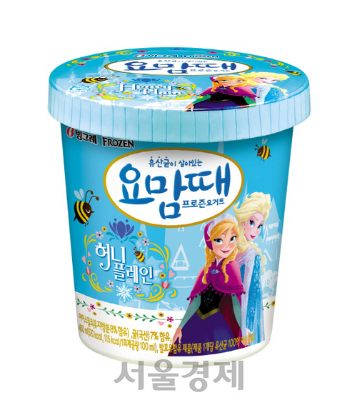 빙그레 관계자는 “요맘때 허니플레인은 요거트 분말을 사용하는 기존 프로즌 요거트와 달리 액상 형태의 농후 발효유를 사용해 200억 개체 이상의 살아있는 유산균을 함유하고 있다”“발포공법을 적용한 용기를 사용해 표면 온도가 기존 종이 용기보다 5℃가량 높아 추운 날씨에서 손으로 잡고 취식하기 용이하다”고 설명했다.