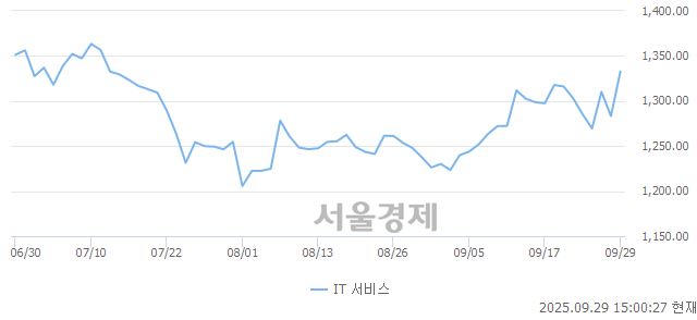 강세업종은 IT 서비스업(+3.80%), 증권업(+3.16%), 전기전자업(+2.06%)이며, 약세업종은 부동산업(-0.42%), 통신업(-0.15%), 서비스업(-0.10%)이다. 수급측면으로는 전기전자업이 61:39의 매도우위세를 나타내고 있으며, 기타업은 27:73의 강한 매수우위세를 기록 중이다.