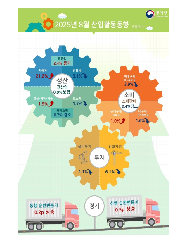 8월 전산업생산이 자동차 수출 증가에도 제자리걸음했다. 소비와 투자는 나란히 감소했다.