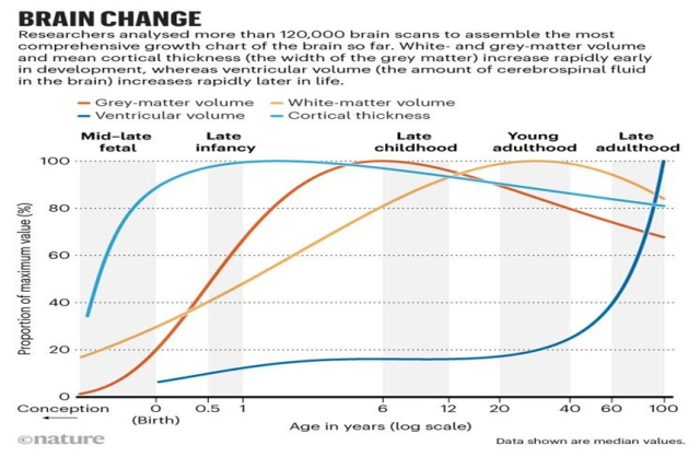 미국과 영국의 연구진들이 네이처에 발표한 뇌 발달 관련 논문에 따르면, 생후 4개월의 뇌는 최대 용량의 10%이고 만 3세에 80%까지 성장하며 인지능력을 담당하는 대뇌피질의 회색질은 5.9세에 최고 부피를 보였다고 한다. 즉, 영유아 시기의 뇌 발달이 일생 주기에 있어서 가장 활발하게 이루어지며, 실행, 학습과 기억, 지각 운동, 언어, 복합 주의력, 사회적 인지 등 살아가는 데 필요한 핵심 역량인 인지능력이 극대화되는 시기가 바로 영유아 시기라는 것이다.