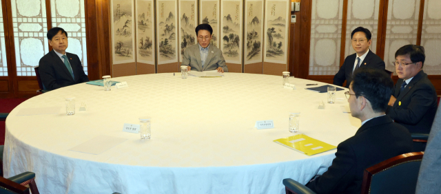 김민석(왼쪽 두 번째) 국무총리 주재로 2일 서울 종로구 총리공관에서 제2회 3+α(알파) 회의가 열리고 있다. 이날 회의에는 김 총리와 구윤철 부총리 겸 기획재정부 장관, 배경훈 부총리 겸 과학기술정보통신부 장관, 김성환 기후에너지환경부 장관 등이 참석했다. 오승현 기자 2025.11.02