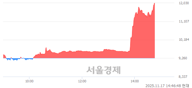 이수화학은 전일 하락(9,260원, ▼-830, -8.23%) 마감했으나, 이 시각 현재 장중 상한가를 기록하며 강세를 보이고 있다.