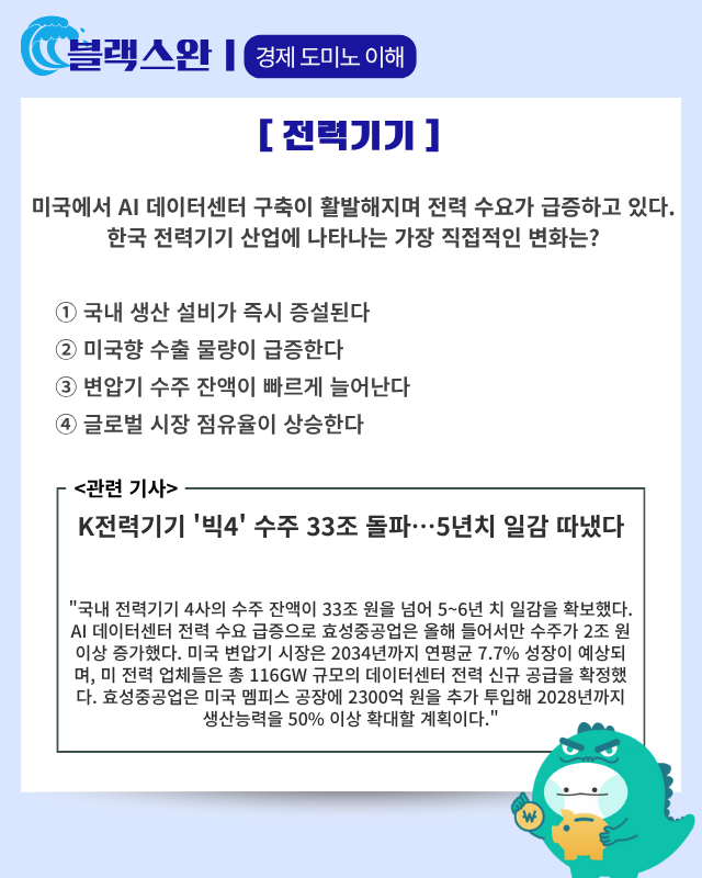 ▶ 기사 바로가기: K전력기기 ‘빅4’ 수주 33조 돌파…5년치 일감 따냈다