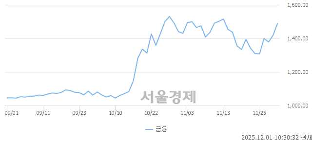 현재 상승종목은 상한가 3개 종목을 포함해 1143개, 하락종목은 493개를 기록하고 있다.