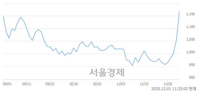 앱코는 전일 상승(1,058원, ▲55, +5.48%)한데 이어 이틀 연속 상승세를 이어가고 있다.
