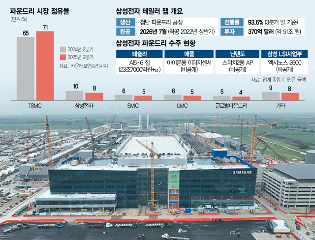 시장조사 업체 트렌드포스에 따르면 올 2분기 기준 세계 파운드리 시장 점유율은 TSMC 71%, 삼성전자 8%다. 점유율 격차는 크지만 테슬라 등 대형 고객사 확보와 수율 안정화가 맞물리면 삼성에 반등 계기가 될 것이라는 분석이 나온다. 업계는 테일러 팹 가동률이 본궤도에 오르는 2027년을 기점으로 삼성 파운드리가 흑자 전환에 성공하며 추격 속도를 높일 것으로 전망한다. 반도체 업계 관계자는 “미국 현지에서 즉각적인 기술 대응이 가능한 베테랑 인력을 확보하는 것은 TSMC와 서비스 격차를 줄이는 핵심 열쇠가 될 것”이라고 말했다.