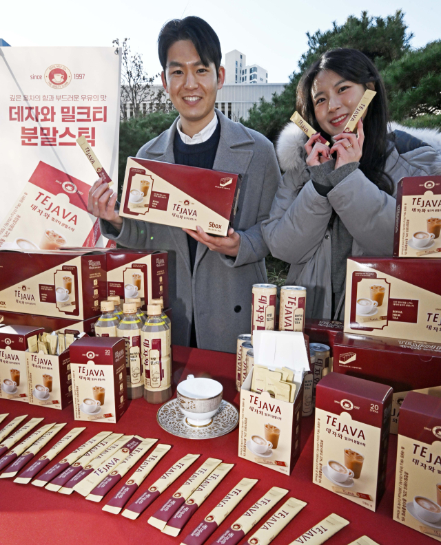 9일 서울 동대문구 동아오츠카 서울사무소에서 모델들이 새롭게 출시된 밀크티 '데자와 분말스틱'을 소개하고 있다. 휴대가 간편한 분말 형태로 홍차에 우유를 더한 부드러운 맛과 향을 지닌 '데자와 분말스틱'은 뜨거운 물과 찬물에 모두 잘 녹아 사계절 내내 즐길 수 있다.