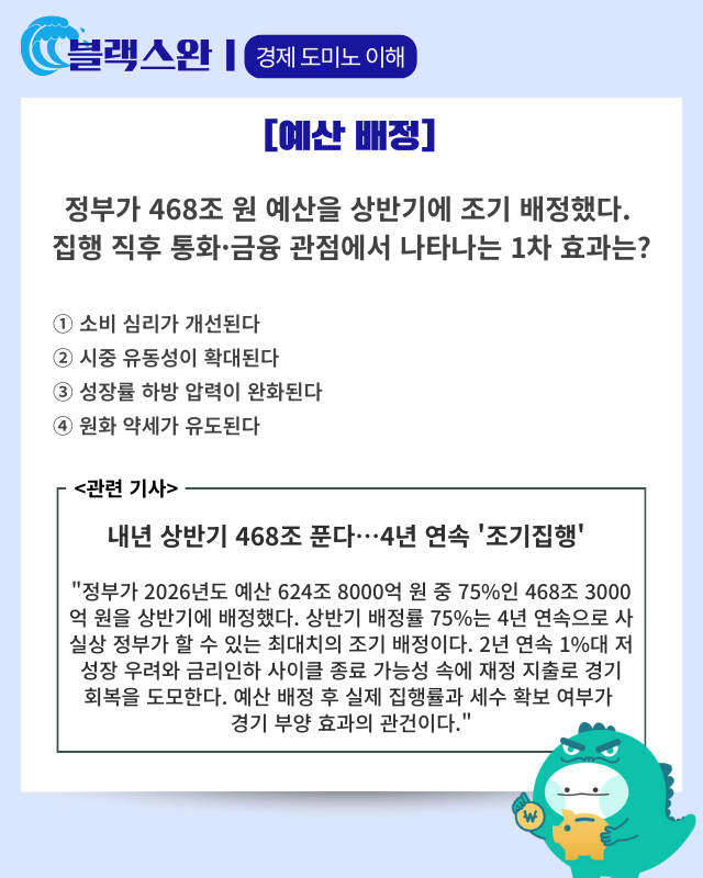 ▶ 기사 바로가기: 내년 예산 75% 상반기 집행…성장·민생에 조기투자