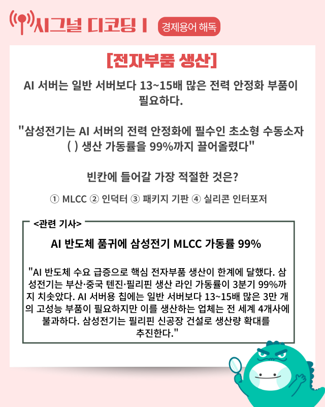 ▶ 기사 바로가기: AI 반도체 품귀에 삼성전기 MLCC 가동률 99% “내년 필리핀 신공장 착공”