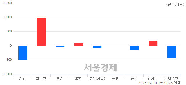 투자자별 동향을 살펴보면 외국인은 980억을 순매수 했으며, 개인은 503억, 기관은 35억을 각각 순매도 했다.