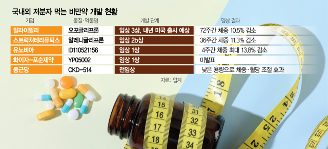 글로벌 제약사들이 저분자 화합물 기반 먹는 비만약에 관심을 보이면서 일동제약 자회사인 유노비아가 개발한 경구 GLP-1 계열 저분자 화합물 ‘ID110521156’의 가치도 높아질 것이란 전망이 나온다. 유노비아는 임상 1상 4주 반복 투여시험에서 최대 13.8%의 체중 감소 효과를 기록했다. 위장관 부작용이나 간 독성 등 중대한 이상반응은 나타나지 않았다. 유노비아는 글로벌 2상 설계와 함께 기술이전 논의를 진행 중이다.